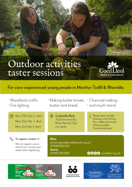 Voices From Care Cymru are delivering outdoor activities taster sessions for care-experienced young people living in the Merthyr and RCT areas!