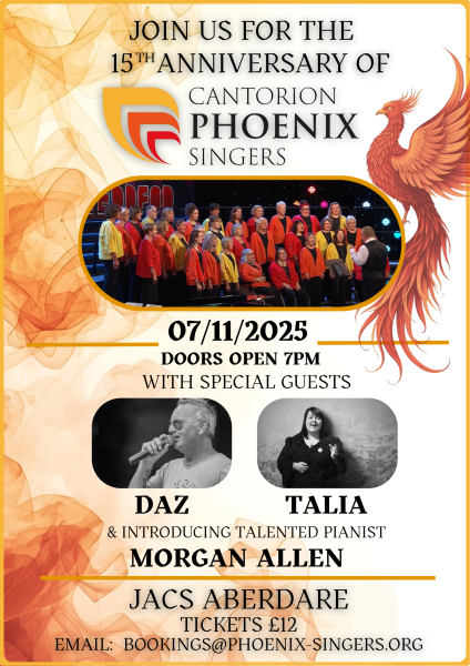 Come along and celebrate the 15th anniversary of our fabulous choir at Jacs Aberdare!