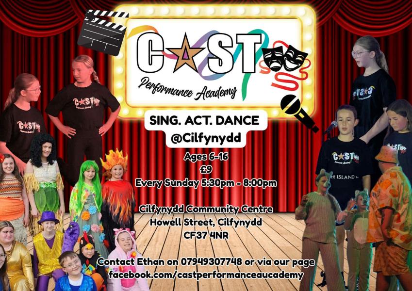 Performance Academy sessions for young people (every week in term time) for children and young people aged 6-16 at Cilfynydd Community Centre.