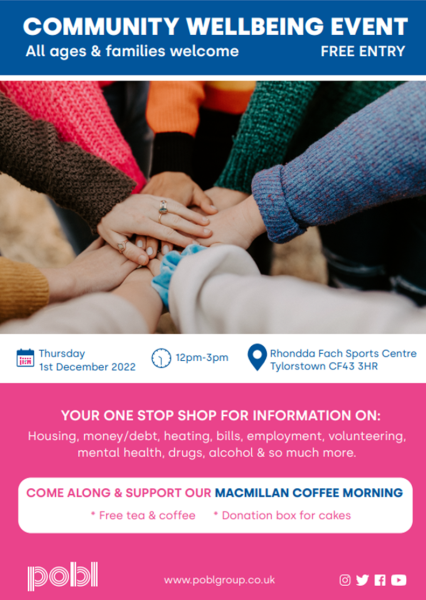 Community wellbeing and advice day. Your one stop shop for help and advice on topics like housing, money, debt, employment, volunteering, heating, eating, mental health, drugs and alcohol.