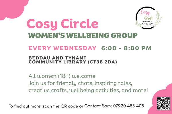 Cosy Circle meets at Beddau & Tynant Commnunity Library and has shown us the power of simple human connection.