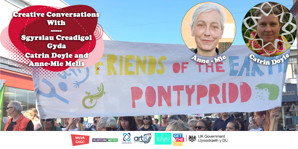 Welcome to our Environmental themed Creative Conversations event. Come and meet with local artists and activists Catrin Doyle and Anne-Mie Melis, co-creators of the Pontypridd Nature Reserve arts engagement project that tackles biodiversity loss, climate change and sustainable living in our home town.