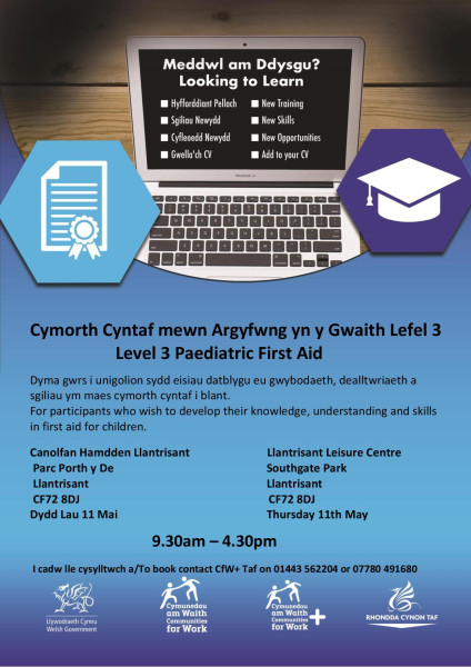 Dyma gwrs i unigolion sydd eisiau datblygu eu gwybodaeth, dealltwriaeth a sgiliau ym maes cymorth cyntaf i blant.