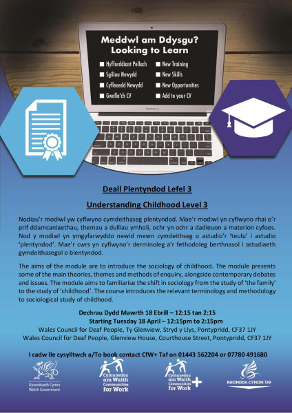 I cadw lle cysylltwch a/To book contact CfW+ Taf on 01443 562204 or 07780 491680