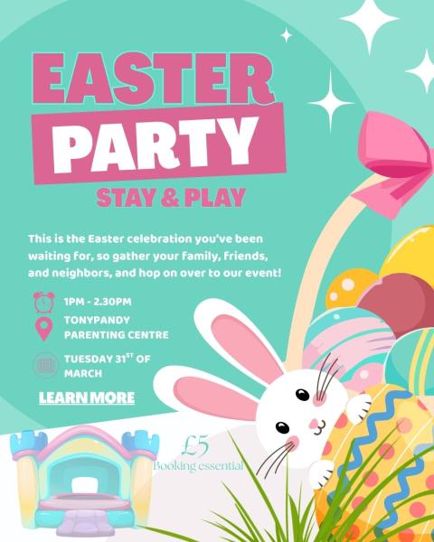 Come and join us at our Parenting Hub in Tonypandy for our Easter Party and Breakfast with the Easter Bunny
