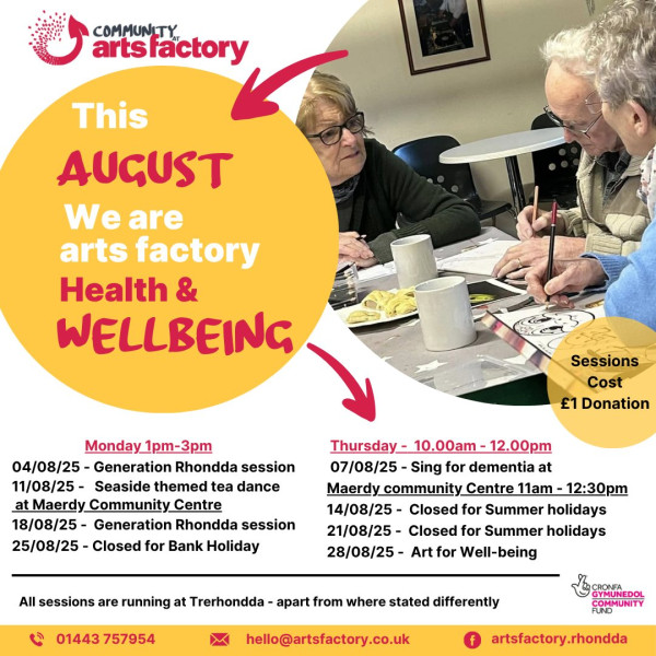 Art For Wellbeing on Thursday - (28th August) (10.00-12.00pm) at Trerhondda, Ferndale.