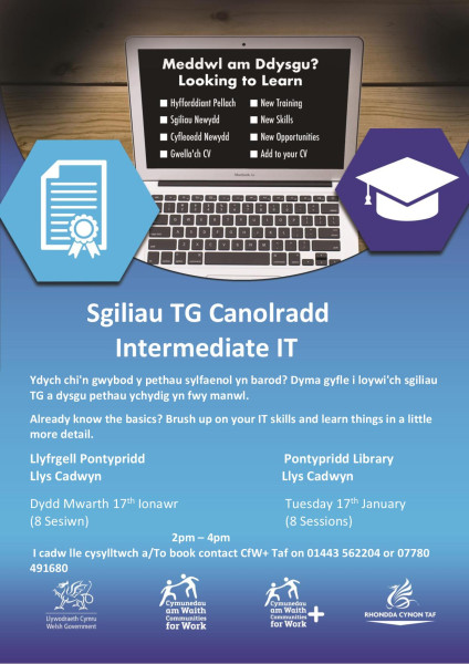 Ydych chi'n gwybod y pethau sylfaenol yn barod? Dyma gyfle i loywi'ch sgiliau TG a dysgu pethau ychydig yn fwy manwl.