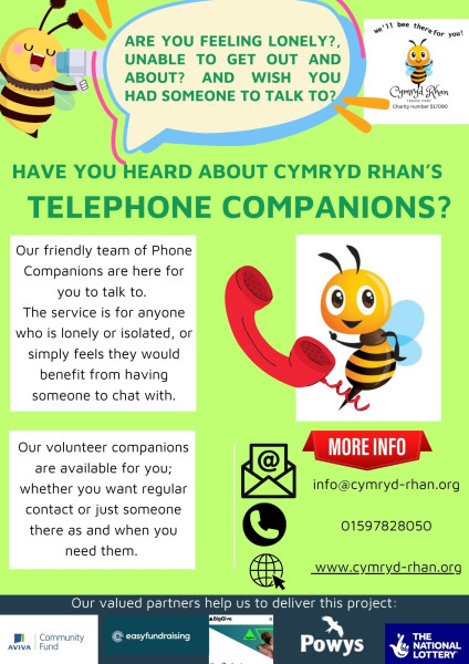 Our Phone Companions are run by Helen Baynham so contact her if you would like a chat with one of our friendly volunteers. And remember....we are here for you.
