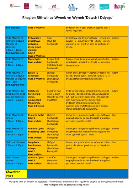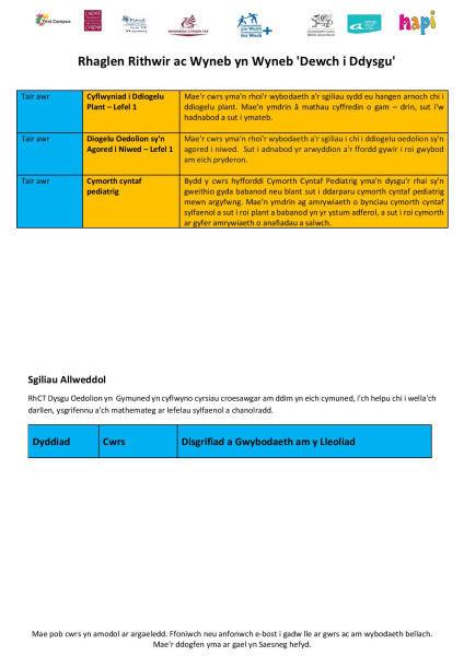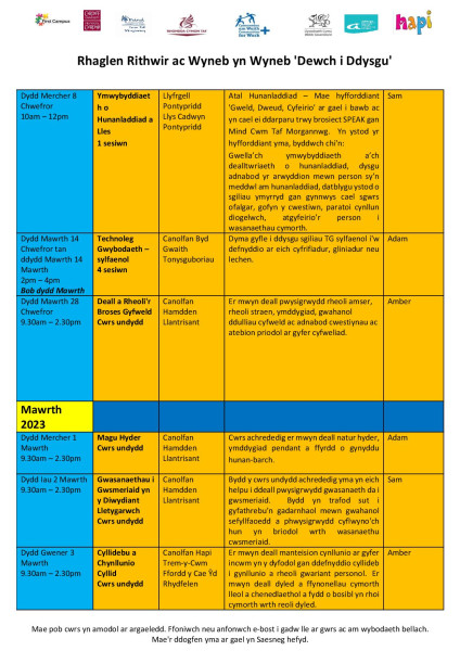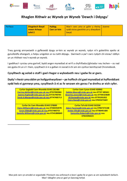 Rhaglen Rithwir ac Wyneb yn Wyneb ' Dewch i Ddysgu'