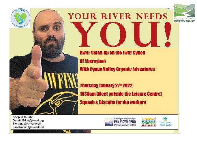 We are meeting for a clean-up of the river Cynon and it's banks at Abecynon on Jan 27th 2022 at 1030 am.