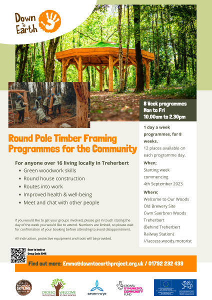 Welcome To Our Woods woodland wellbeing hub at the Old Brewery, Treherbert). Follow links on the poster to register your interest.