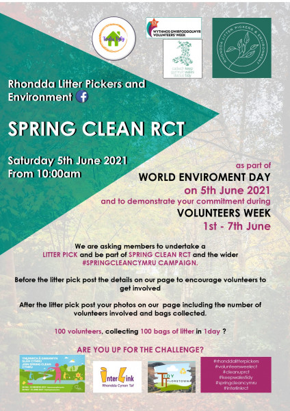 Litter picking across RCT for World Environment Day - 5th June 2021.