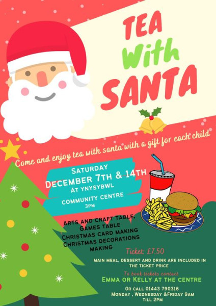 £7.50 per head includes main meal, dessert and a drink. Also - arts and crafts table, games table, Christmas card making, Christmas decorations making. A gift is provided for each child.