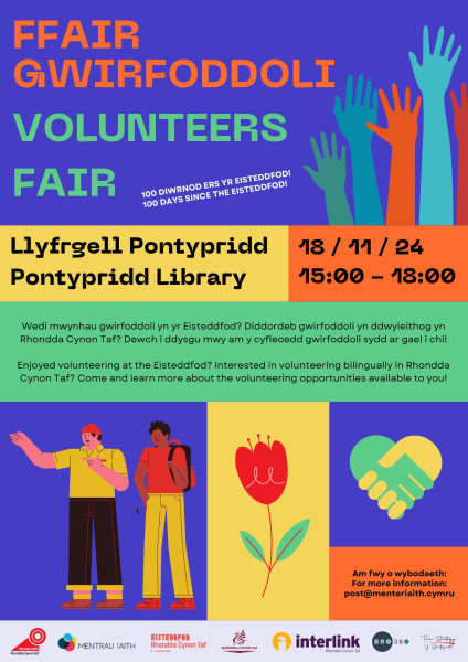 Are you interested in volunteering in Rhondda Cynon Taf? Please come and meet local organisations, looking for volunteers, at the Volunteering Fayre at Pontypridd Library on Monday 18th November 2024, 3pm-6pm.